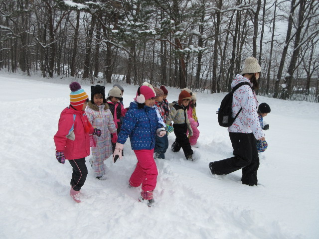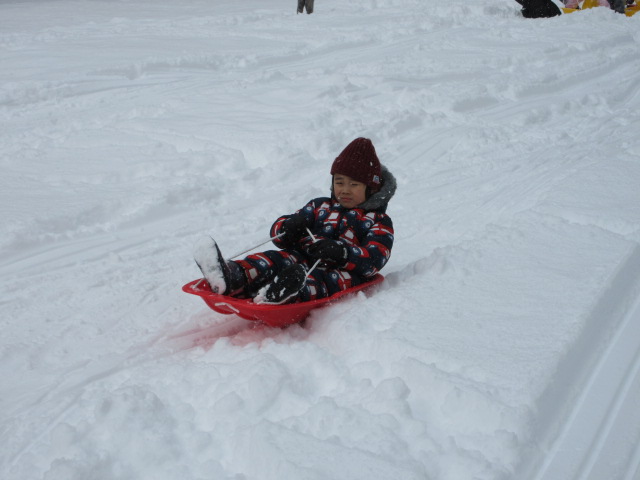 「それー!!」と先生たちがみんなを乗せたそりを押してあげましたが、始めは雪がふかふかすぎてなかなか進みませんでした(笑)
