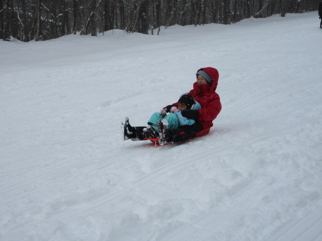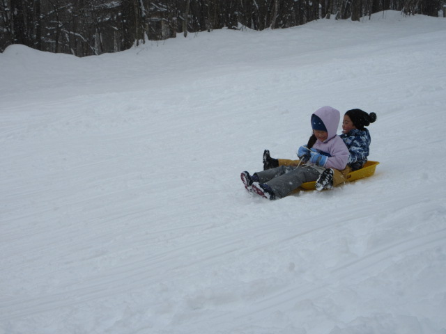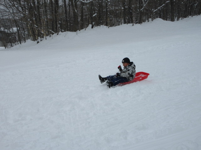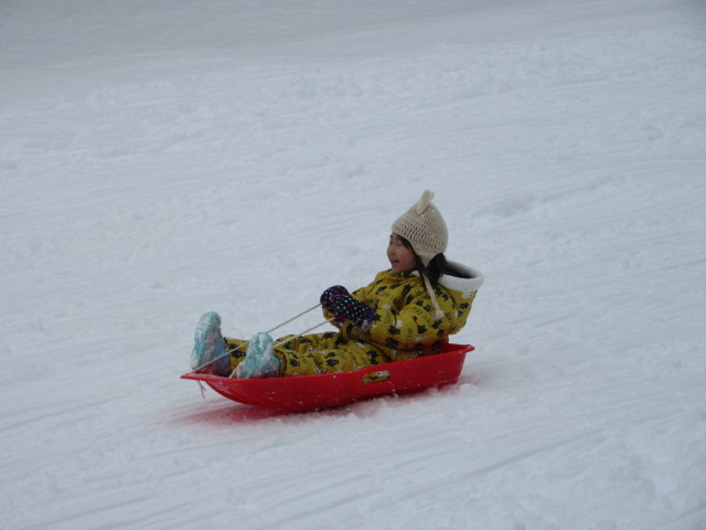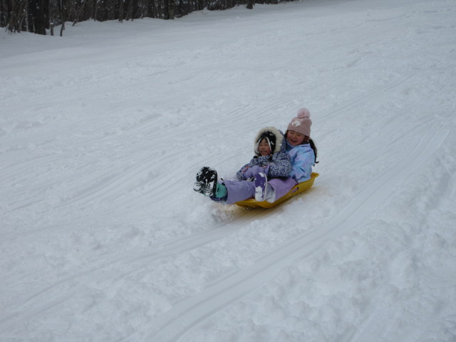 何回も滑っているうちに、雪が押し固められ滑るようになりました😊