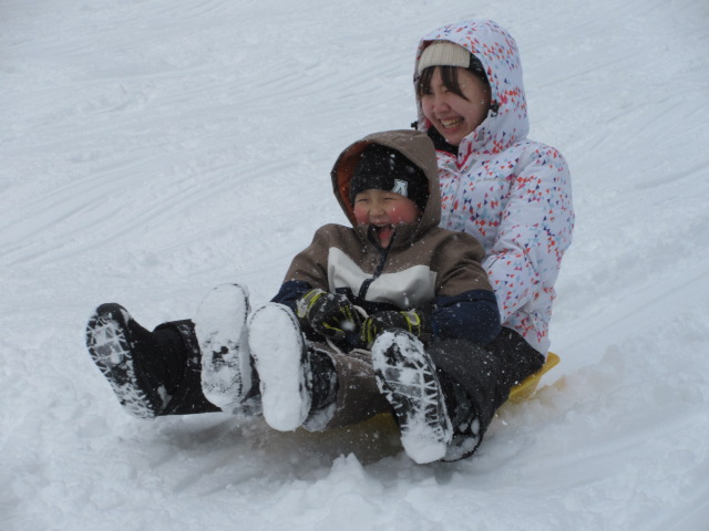 上手に滑れるようになったので、二人乗りにも挑戦😊 「たのしーーーい!!」