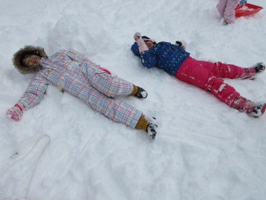 たくさん滑って疲れたら、寝っ転がって休憩😊 「あー気持ちいー!」