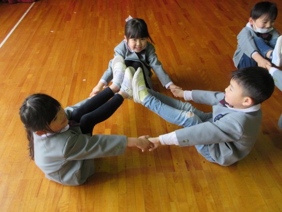 次は年中さん。年中さんは組体操を見せてくれました。まずは一人技!「あざらし」